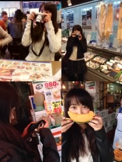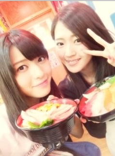 「今朝ライブの前に 場外市場に行ってきたよーー まいみちゃんとなっきぃと!!」